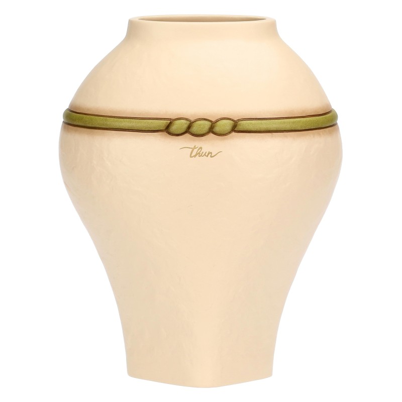 La sua forma ampia e armoniosa lo rende ideale sia per accogliere composizioni floreali importanti, sia come oggetto decorativo indipendente da esporre su una credenza, un mobile d’ingresso o una mensola in soggiorno. Realizzato in ceramica di alta qualità, ogni pezzo è unico e riflette la cura artigianale e il design senza tempo che da sempre contraddistinguono i prodotti THUN.